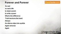 "Forever": 'tis a single word! <br /> Our rude forefathers deemed it two: <br /> Can you imagine so absurd <br /> A view? <br /> <br /> "Forever"! What abysms of woe <br /> The word reveals, what frenzy, what <br /> Despair! "For ever" (printed so) <br /> Did not. <br /> <br /> It looks, ah me! how trite and tame! <br /> It fails to sadden or appal <br /> Or solace--it is not the same <br /> At all. <br /> <br /> O thou to whom it first occurred <br /> To solder the disjoined, and dower <br /> The native language with a word <br /> Of power: <br /> <br /> We bless thee! Whether far or near <br /> Thy dwelling, whether dark or fair <br /> Thy kingly brow, is neither here <br /> Nor there. <br /> <br /> But in men's hearts shall be thy throne, <br /> While the great pulse of England beats. <br /> Thou coiner of a word unknown <br /> To Keats! <br /> <br /> And nevermore must printer do <br /> As men did long ago; but run <br /> "For" into "ever," bidding two <br /> Be one. <br /> <br /> "Forever"! passion-fraught, it throws <br /> O'er the dim page a gloom, a glamour: <br /> It's sweet, it's strange; and I suppose <br /> It's grammar. <br /> <br /> "Forever"! 'Tis a single word! <br /> And yet our fathers deemed it two: <br /> Nor am I confident they erred; <br /> Are you?<br /><br />Charles Stuart Calverley<br /><br />http://www.poemhunter.com/poem/forever-6/