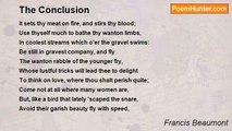 Cold Virtue guard me, or I shall endure <br />From the next glance a double calenture <br />Of fire and lust! Two flames, two Semeles, <br />Dwell in those eyes, whose looser glowing rays <br />Would thaw the frozen Russian into lust, <br />And parch tile negro's hotter blood to dust. <br /> Dart not your bllls of wild-fire here; go throw <br />Those flakes upon the eunuch's colder snow, <br />Till he in active blood do boil as high <br />As he that made him so in jealousy. <br /> When that loose queen of love did dress her eyes <br />In the most taking flame to the prize <br />At Ida; that faint glare to this desire <br />Burnt like a taper to the zone of fire: <br />And could she then the lustful youth have crowned <br />With thee his Helen, Troy had never found <br />Her fate in Sinon's fire; thy hotter eyes <br />Had made it burn a quicker sacrifice <br />To lust, whilst every glance in subtle wiles <br />Had shot itself like lightning through the piles. <br /> Go blow upon some equal blood, and let <br />Earth's hotter ray engender and beget <br />New flames to dress the aged Paphians' quire, <br />And lend the world new Cupids borne on fire. <br />Dart no more here, those flatmes, nor strive to throw <br />Your fire on him who is immured in snow! <br />Those glances work on me like the weak shine <br />The frosty sun throws on the Appenine, <br />When the hill's active coldness doth go near <br />To freeze the glimmering taper to his sphere: <br />Each ray is lost on me, like the faint light <br />The glow-worm shoots at the cold breast of night. <br />Thus virtue can secure; but for that name <br />I had been now sin's martyr, and your flame.<br /><br />Francis Beaumont<br /><br />http://www.poemhunter.com/poem/the-glance-5/