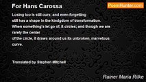 Put out my eyes, and I can see you still, <br />Slam my ears to, and I can hear you yet; <br />And without any feet can go to you; <br />And tongueless, I can conjure you at will. <br />Break off my arms, I shall take hold of you <br />And grasp you with my heart as with a hand; <br />Arrest my heart, my brain will beat as true; <br />And if you set this brain of mine afire, <br />Then on my blood-stream I yet will carry you.<br /><br />Rainer Maria Rilke<br /><br />http://www.poemhunter.com/poem/put-out-my-eyes/