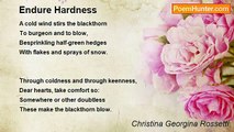 Gone were but the Winter, <br />Come were but the Spring, <br />I would go to a covert <br />Where the birds sing; <br /> <br />Where in the whitethorn <br />Singeth a thrush, <br />And a robin sings <br />In the holly-bush. <br /> <br />Full of fresh scents <br />Are the budding boughs <br />Arching high over <br />A cool green house: <br /> <br />Full of sweet scents, <br />And whispering air <br />Which sayeth softly: <br />"We spread no snare; <br /> <br />"Here dwell in safety, <br />Here dwell alone, <br />With a clear stream <br />And a mossy stone. <br /> <br />"Here the sun shineth <br />Most shadily; <br />Here is heard an echo <br />Of the far sea, <br />Though far off it be."<br /><br />Christina Georgina Rossetti<br /><br />http://www.poemhunter.com/poem/spring-quiet/