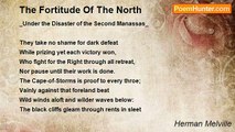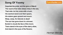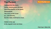 When ocean-clouds over inland hills <br />Sweep storming in late autumn brown, <br />And horror the sodden valley fills, <br />And the spire falls crashing in the town, <br />I muse upon my country's ills-- <br />The tempest burning from the waste of Time <br />On the world's fairest hope linked with man's foulest crime. <br /> <br />Nature's dark side is heeded now-- <br />(Ah! optimist-cheer dishartened flown)-- <br />A child may read the moody brow <br />Of yon black mountain lone. <br />With shouts the torrents down the gorges go, <br />And storms are formed behind the storms we feel: <br />The hemlock shakes in the rafter, the oak in the driving keel.<br /><br />Herman Melville<br /><br />http://www.poemhunter.com/poem/misgivings/