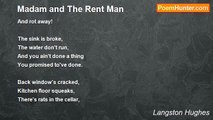 You say I O.K.ed <br />LONG DISTANCE? <br />O.K.ed it when? <br />My goodness, Central <br />That was then! <br /> <br />I'm mad and disgusted <br />With that Negro now. <br />I don't pay no REVERSED <br />CHARGES nohow. <br /> <br />You say, I will pay it-- <br />Else you'll take out my phone? <br />You better let <br />My phone alone. <br /> <br />I didn't ask him <br />To telephone me. <br />Roscoe knows darn well <br />LONG DISTANCE <br />Ain't free. <br /> <br />If I ever catch him, <br />Lawd, have pity! <br />Calling me up <br />From Kansas City. <br /> <br />Just to say he loves me! <br />I knowed that was so. <br />Why didn't he tell me some'n <br />I don't know? <br /> <br />For instance, what can <br />Them other girls do <br />That Alberta K. Johnson <br />Can't do--and more, too? <br /> <br />What's that, Central? <br />You say you don't care <br />Nothing about my <br />Private affair? <br /> <br />Well, even less about your <br />PHONE BILL, does I care! <br /> <br />Un-humm-m! . . . Yes! <br />You say I gave my O.K.? <br />Well, that O.K. you may keep-- <br /> <br />But I sure ain't gonna pay!<br /><br />Langston Hughes<br /><br />http://www.poemhunter.com/poem/madam-and-the-phone-bill/