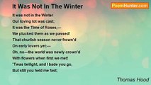 The sun was slumbering in the West, <br />My daily labors past; <br />On Anna's soft and gentle breast <br />My head reclined at last; <br />The darkness closed around, so dear <br />To fond congenial souls, <br />And thus she murmur'd at my ear, <br />"My love, we're out of coals! <br /> <br />"That Mister Bond has call'd again, <br />Insisting on his rent; <br />And all the Todds are coming up <br />To see us, out of Kent -- <br />I quite forgot to tell you John <br />Has had a tipsy fall -- <br />I'm sure there's something going on <br />WIth that vile Mary Hall! <br /> <br />"Miss Bell has bought the sweetest silk, <br />And I have bought the rest -- <br />Of course, if we go out of town, <br />Southend will be the best. <br />I really think the Jones's house <br />Would be the thing for us; <br />I think I told you Mrs. Pope <br />Had parted with her hus -- <br /> <br />"Cook , by the way, came up today, <br />To bid me suit myself -- <br />And what d'ye think? The rats have gnaw'd <br />The victuals on the shelf, <br />And, lord! there's such a letter come, <br />Inviting you to fight! <br />Of course you don't intend to go -- <br />God bless you, dear, good night!"<br /><br />Thomas Hood<br /><br />http://www.poemhunter.com/poem/the-sun-was-slumbering-in-the-west/