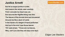 I leaned against the mantel, sick, sick, <br />Thinking of my failure, looking into the abysm, <br />Weak from the noon-day heat. <br />A church bell sounded mournfully far away, <br />I heard the cry of a baby, <br />And the coughing of John Yarnell, <br />Bed-ridden, feverish, feverish, dying, <br />Then the violent voice of my wife: <br />"Watch out, the potatoes are burning!" <br />I smelled them ... then there was irresistible disgust. <br />I pulled the trigger ... blackness ... light ... <br />Unspeakable regret ... fumbling for the world again. <br />Too late! Thus I came here, <br />With lungs for breathing ... one cannot breathe here with lungs, <br />Though one must breathe.... Of what use is it <br />To rid one's self of the world, <br />When no soul may ever escape the eternal destiny of life?<br /><br />Edgar Lee Masters<br /><br />http://www.poemhunter.com/poem/harold-arnett/