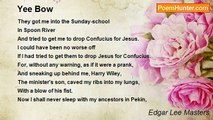 Whoever thou art who passest by <br />Know that my father was gentle, <br />And my mother was violent, <br />While I was born the whole of such hostile halves, <br />Not intermixed and fused, <br />But each distinct, feebly soldered together. <br />Some of you saw me as gentle, <br />Some as violent, <br />Some as both. <br />But neither half of me wrought my ruin. <br />It was the falling asunder of halves, <br />Never a part of each other, <br />That left me a lifeless soul.<br /><br />Edgar Lee Masters<br /><br />http://www.poemhunter.com/poem/henry-layton/