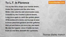 I <br /> <br />Upon your hearse this flower I lay <br />Brief be your sleep! You shall be known <br />When lesser men have had their day: <br />Fame blossoms where true seed is sown, <br />Or soon or late, let Time wound what it may. <br /> <br />II <br /> <br />Unvext by any dream of fame, <br />You smiled, and bade the world pass by: <br />But I--I turned, and saw a name <br />Shaping itself against the sky-- <br />White star that rose amid the battle's flame! <br /> <br />III <br /> <br />Brief be your sleep, for I would see <br />Your laurels--ah, how trivial now <br />To him must earthly laurel be <br />Who wears the amaranth on his brow! <br />How vain the voices of mortality!<br /><br />Thomas Bailey Aldrich<br /><br />http://www.poemhunter.com/poem/threnody-3/