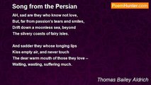 The spare professor, grave and bald, <br />Began his paper. It was called, <br />I think, "A Brief Historic Glance <br />At Russia, Germany, and France." <br />A glance, but to my best belief <br />'T was almost anything but brief-- <br />A wide survey, in which the earth <br />Was seen before mankind had birth; <br />Strange monsters basked them in the sun, <br />Behemoth, armored glyptodon, <br />And in the dawn's unpractised ray <br />The transient dodo winged its way; <br />Then, by degrees, through slit and slough, <br />We reached Berlin--I don't know how. <br />The good Professor's monotone <br />Had turned me into senseless stone <br />Instanter, but that near me sat <br />Hypatia in her new spring hat, <br />Blue-eyed, intent, with lips whose bloom <br />Lighted the heavy-curtained room. <br />Hypatia--ah, what lovely things <br />Are fashioned out of eighteen springs! <br />At first, in sums of this amount, <br />The eighteen winters do not count. <br />Just as my eyes were growing dim <br />With heaviness, I saw that slim, <br />Erect, elastic figure there, <br />Like a pond-lily taking air. <br />She looked so fresh, so wise, so neat, <br />So altogether crisp and sweet, <br />I quite forgot what Bismarck said, <br />And why the Emperor shook his head, <br />And how it was Von Moltke's frown <br />Cost France another frontier town. <br />The only facts I took away <br />From the Professor's theme that day <br />Were these: a forehead broad and low, <br />Such as antique sculptures show; <br />A chin to Greek perfection true; <br />Eyes of Astarte's tender blue; <br />A high complection without fleck <br />Or flaw, and curls about her neck.<br /><br />Thomas Bailey Aldrich<br /><br />http://www.poemhunter.com/poem/at-a-reading/