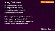 When darkness long has veil'd my mind, <br />And smiling day once more appears, <br />Then, my Redeemer, then I find <br />The folly of my doubts and fears. <br /> <br />Straight I upbraid my wandering heart, <br />And blush that I should ever be <br />Thus prone to act so base a part, <br />Or harbour one hard thought of Thee! <br /> <br />Oh! let me then at length be taught <br />What I am still so slow to learn, <br />That God is love, and changes not, <br />Nor knows the shadow of a turn. <br /> <br />Sweet truth, and easy to repeat! <br />But when my faith is sharply tried, <br />I find myself a learner yet, <br />Unskilful, weak, and apt to slide. <br /> <br />But, O my Lord, one look from Thee <br />Subdues the disobedient will, <br />Drives doubt and discontent away, <br />And Thy rebellious worm is still. <br /> <br />Thou art as ready to forgive <br />As I am ready to repine; <br />Thou, therefore, all the praise receive; <br />Be shame and self-abhorrence mine.<br /><br />William Cowper<br /><br />http://www.poemhunter.com/poem/peace-after-a-storm/