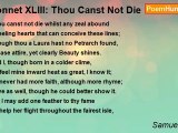 O be not griev'd that these my papers should <br />Betray unto the world how fair thou art, <br />Or that my wits have show'd the best they could <br />The chastest flame that ever warmed heart. <br />Think not, sweet Delia, this shall be thy shame, <br />My Muse should sound thy praise with mournful warble; <br />How many live, the glory of whose name <br />Shall rest in ice when thine is grav'd in marble? <br />Thou mayst in after ages live esteem'd, <br />Unburied in these lines reserv'd in pureness; <br />These shall entomb those eyes that have redeem'd <br />Me from the vulgar, thee from all obscureness. <br />Although my carefull accents ne'er mov'd thee, <br />Yet count it no disgrace that I have lov'd thee.<br /><br />Samuel Daniel<br /><br />http://www.poemhunter.com/poem/sonnet-xliv-o-be-not-griev-d/