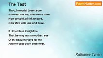 The house where I was born, <br />Where I was young and gay, <br />Grows old amid its corn, <br />Amid its scented hay. <br /> <br />Moan of the cushat dove, <br />In silence rich and deep; <br />The old head I love <br />Nods to its quiet sleep. <br /> <br />Where once were nine and ten <br />Now two keep house together; <br />The doves moan and complain <br />All day in the still weather. <br /> <br />What wind, bitter and great, <br />Has swept the country's face, <br />Altered, made desolate <br />The heart-remembered place ? <br /> <br />What wind, bitter and wild, <br />Has swept the towering trees <br />Beneath whose shade a child <br />Long since gathered heartease ? <br /> <br />Under the golden eaves <br />The house is still and sad, <br />As though it grieves and grieves <br />For many a lass and lad. <br /> <br />The cushat doves complain <br />All day in the still weather; <br />Where once were nine or ten <br />But two keep house together.<br /><br />Katharine Tynan<br /><br />http://www.poemhunter.com/poem/the-doves/