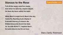TELL ME, LOVE, when I rove o'er some far distant plain, <br />Shall I cherish the passion that dwells in my breast? <br />Or will ABSENCE subdue the keen rigours of pain, <br />And the swift wing of TIME bring the balsam of rest? <br /> <br />Shall the image of HIM I was born to adore, <br />Inshrin'd in my bosom my idol still prove? <br />Or seduced by caprice shall fine feeling no more, <br />With the incense of TRUTH gem the altar of LOVE? <br /> <br />When I view the deep tint of the dew-dropping Rose, <br />Where the bee sits enamour'd its nectar to sip; <br />Then, ah say, will not memory fondly disclose <br />The softer vermilion that glow'd on HIS lip? <br /> <br />Will the SUN when he rolls in his chariot of fire, <br />So dazzle my mind with the glare of his rays, <br />That my senses one moment shall cease to admire <br />The more perfect refulgence that beam'd in HIS lays? <br /> <br />When the shadows of twilight steal over the plain, <br />And the NIGHTINGALE pours its lorn plaint in the grove, <br />Ah! will not the fondness that thrills thro' the strain, <br />Then recall to my mind HIS dear accents of Love! <br /> <br />When I gaze on the STARS that bespangle the sky, <br />Ah! will not their mildness some pity inspire; <br />Like the soul-touching softness that beam'd in HIS eye, <br />When the tear of REGRET chill'd the flame of DESIRE? <br /> <br />Then spare, thou dear Urchin, thou soother of pain, <br />Oh! spare the sweet PICTURE engrav'd on my heart; <br />As a record of LOVE let it ever remain; <br />My bosom thy tablet thy pencil A DART.<br /><br />Mary Darby Robinson<br /><br />http://www.poemhunter.com/poem/stanzas-to-love/