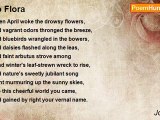 Fly, poppied drowse, away! <br />Across the marshes sweep, <br />Chasing the fallen moon, the shadows gray; <br />Make me not laggard, Sleep! <br /> <br />Against the morning move, <br />Fronting the reddening miles! <br />Touch the white eyelids of the girl I love, <br />And fill her dreams with smiles.<br /><br />John Hay<br /><br />http://www.poemhunter.com/poem/reveille-4/