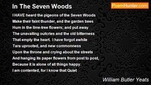 Dry timber under that rich foliage, <br />At wine-dark midnight in the sacred wood, <br />Too old for a man's love I stood in rage <br />Imagining men. Imagining that I could <br />A greater with a lesser pang assuage <br />Or but to find if withered vein ran blood, <br />I tore my body that its wine might cover <br />Whatever could rccall the lip of lover. <br /> <br />And after that I held my fingers up, <br />Stared at the wine-dark nail, or dark that ran <br />Down every withered finger from the top; <br />But the dark changed to red, and torches shone, <br />And deafening music shook the leaves; a troop <br />Shouldered a litter with a wounded man, <br />Or smote upon the string and to the sound <br />Sang of the beast that gave the fatal wound. <br /> <br />All stately women moving to a song <br />With loosened hair or foreheads grief-distraught, <br />It seemed a Quattrocento painter's throng, <br />A thoughtless image of Mantegna's thought -- <br />Why should they think that are for ever young? <br />Till suddenly in grief's contagion caught, <br />I stared upon his blood-bedabbled breast <br />And sang my malediction with the rest. <br /> <br />That thing all blood and mire, that beast-torn wreck, <br />Half turned and fixed a glazing eye on mine, <br />And, though love's bitter-sweet had all come back, <br />Those bodies from a picture or a coin <br />Nor saw my body fall nor heard it shriek, <br />Nor knew, drunken with singing as with wine, <br />That they had brought no fabulous symbol there <br />But my heart's victim and its torturer.<br /><br />William Butler Yeats<br /><br />http://www.poemhunter.com/poem/her-vision-in-the-wood/