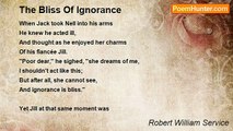 Oh happy he who cannot see <br /> With scientific eyes; <br />Who does not know how flowers grow, <br /> And is not planet wise; <br />Content to find with simple mind <br /> Joys as they are: <br />To whom a rose is just a rose, <br /> A star--a star. <br /> <br />It is not good, I deem, to brood <br /> On things beyond our ken; <br />A rustic I would live and die, <br /> Aloof from learned men; <br />And laugh and sing with zest of Spring <br /> In life's exultant scene,-- <br />For vain my be philosophy, <br /> And what does meaning mean? <br /> <br />I'm talking rot,--I'm really not <br /> As dumb as I pretend; <br />But happiness, I dimly guess, <br /> Is what counts in the end. <br />To educate is to dilate <br /> The nerves of pain: <br />So let us give up books and live <br /> Like hinds again. <br /> <br />The best of wisdom surely is <br /> To be not overwise; <br />For may not thought be evil fraught, <br /> And truth less kind than lies? <br />So let me praise the golden days <br /> I played a gay guitar, <br />And deemed a rose was just a rose, <br /> A star--a star.<br /><br />Robert William Service<br /><br />http://www.poemhunter.com/poem/ignorance-2/