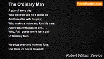 My rhymes are rough, and often in my rhyming <br /> I've drifted, silver-sailed, on seas of dream, <br />Hearing afar the bells of Elfland chiming, <br /> Seeing the groves of Arcadie agleam. <br /> <br />I was the thrall of Beauty that rejoices <br /> From peak snow-diademed to regal star; <br />Yet to mine aerie ever pierced the voices, <br /> The pregnant voices of the Things That Are. <br /> <br />The Here, the Now, the vast Forlorn around us; <br /> The gold-delirium, the ferine strife; <br />The lusts that lure us on, the hates that hound us; <br /> Our red rags in the patch-work quilt of Life. <br /> <br />The nameless men who nameless rivers travel, <br /> And in strange valleys greet strange deaths alone; <br />The grim, intrepid ones who would unravel <br /> The mysteries that shroud the Polar Zone. <br /> <br />These will I sing, and if one of you linger <br /> Over my pages in the Long, Long Night, <br />And on some lone line lay a calloused finger, <br /> Saying: "Lo! It's human-true--it hits me right"; <br />Then will I count this loving toil well spent; <br />Then will I dream awhile--content, content.<br /><br />Robert William Service<br /><br />http://www.poemhunter.com/poem/to-the-man-of-the-high-north/