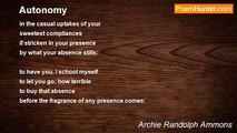 I look for the way <br />things will turn <br />out spiralling from a center, <br />the shape <br />things will take to come forth in <br /> <br />so that the birch tree white <br />touched black at branches <br />will stand out <br />wind-glittering <br />totally its apparent self: <br /> <br />I look for the forms <br />things want to come as <br /> <br />from what black wells of possibility, <br />how a thing will <br />unfold: <br /> <br />not the shape on paper -- though <br />that, too -- but the <br />uninterfering means on paper: <br /> <br />not so much looking for the shape <br />as being available <br />to any shape that may be <br />summoning itself <br />through me <br />from the self not mine but ours.<br /><br />Archie Randolph Ammons<br /><br />http://www.poemhunter.com/poem/poetics/