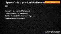 543 <br /> <br />I fear a Man of frugal Speech— <br />I fear a Silent Man— <br />Haranguer—I can overtake— <br />Or Babbler—entertain— <br /> <br />But He who weigheth—While the Rest— <br />Expend their furthest pound— <br />Of this Man—I am wary— <br />I fear that He is Grand—<br /><br />Emily Dickinson<br /><br />http://www.poemhunter.com/poem/i-fear-a-man-of-frugal-speech/