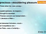 782 <br /> <br />There is an arid Pleasure— <br />As different from Joy— <br />As Frost is different from Dew— <br />Like element—are they— <br /> <br />Yet one—rejoices Flowers— <br />And one—the Flowers abhor— <br />The finest Honey—curdled— <br />Is worthless—to the Bee—<br /><br />Emily Dickinson<br /><br />http://www.poemhunter.com/poem/there-is-an-arid-pleasure/