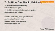 There will be thunder then. Remember me. <br />Say ‘ She asked for storms.’ The entire <br />world will turn the colour of crimson stone, <br />and your heart, as then, will turn to fire. <br /> <br />That day, in Moscow, a true prophecy, <br />when for the last time I say goodbye, <br />soaring to the heavens that I longed to see, <br />leaving my shadow here in the sky.<br /><br />Anna Akhmatova<br /><br />http://www.poemhunter.com/poem/thunder/