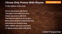To the children of the world <br /> <br />Writing poems is nice, <br />Makes you happy and wise <br />And gives you a prize, <br />Monetary or otherwise. <br /> <br />Making poems is easy; <br />Just be able to think freely, <br />And you'll be surprised to see <br />That words come neatly. <br /> <br />Writing poems is simple; <br />Just have a love for the dictionary. <br />It is the poet's bible <br />That broadens the vocabulary. <br /> <br />Making poems is cool; <br />Just be good at grammar school, <br />For you will need the tool, <br />People to fool. <br /> <br />(Hong Kong,2001)<br /><br />Gilbert Pangyarihan<br /><br />http://www.poemhunter.com/poem/writing-poems-is-cool/