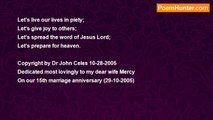 My sleep got disturbed, thrice that day; <br />I could not sleep tho’ a holiday; <br />My mind was filled with thoughts unclear; <br />I got up in the morn, much earlier; <br />‘Twas India’s Independence Day! <br /> <br />Thunder, lightning filled the night’s Sky; <br />The day much overcast did fly; <br />The Rain was just a drizzle that day; <br />Wetted the ground of mud and clay; <br />‘Twas 15th of August, a rainy day. <br /> <br />The pea-birds howled and groaned that night; <br />The Rain made them shiver with fright; <br />Though ten, it looked like six in the morn; <br />The Sun behind the clouds had gone; <br />The Sky ground-glass remained that day. <br /> <br />The leaky tap-waters that fell, <br />Raised wavelets, ploppy-toned and swell; <br />Rain-drops on cables looked like pearls; <br />Dropped, formed again, enticing souls; <br />It looked it would rain long that day. <br /> <br />Rain-drops hanging beneath fir-twigs; <br />Glittered in the scarce light like figs; <br />The whole tree was aglow, alit; <br />A thing of beauty, don’t miss it! <br />The Sky looked like a barred-white board! <br /> <br />A frail, brown-skinned, bony human, <br />With sack on head, bent-back, he ran! <br />The Indian was agonizing! <br />Tho’ people keep sermonizing! <br />Fifty years after Independence! <br />What good was done for the common-man?<br /><br />Dr John Celes<br /><br />http://www.poemhunter.com/poem/15th-august-1998-in-india/