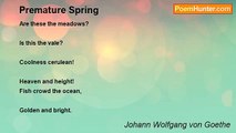 THE bed of flowers <br /> <br />Loosens amain, <br />The beauteous snowdrops <br /> <br />Droop o'er the plain. <br />The crocus opens <br /> <br />Its glowing bud, <br />Like emeralds others, <br /> <br />Others, like blood. <br />With saucy gesture <br /> <br />Primroses flare, <br />And roguish violets, <br /> <br />Hidden with care; <br />And whatsoever <br /> <br />There stirs and strives, <br />The Spring's contented, <br /> <br />If works and thrives. <br /> <br />'Mongst all the blossoms <br /> <br />That fairest are, <br />My sweetheart's sweetness <br /> <br />Is sweetest far; <br />Upon me ever <br /> <br />Her glances light, <br />My song they waken, <br /> <br />My words make bright, <br />An ever open <br /> <br />And blooming mind, <br />In sport, unsullied, <br /> <br />In earnest, kind. <br />Though roses and lilies <br /> <br />By Summer are brought, <br />Against my sweetheart <br /> <br />Prevails he nought.<br /><br />Johann Wolfgang von Goethe<br /><br />http://www.poemhunter.com/poem/next-year-s-spring/