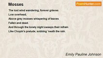 A thin wet sky, that yellows at the rim, <br />And meets with sun-lost lip the marsh's brim. <br /> <br />The pools low lying, dank with moss and mould, <br />Glint through their mildews like large cups of gold. <br /> <br />Among the wild rice in the still lagoon, <br />In monotone the lizard shrills his tune. <br /> <br />The wild goose, homing, seeks a sheltering, <br />Where rushes grow, and oozing lichens cling. <br /> <br />Late cranes with heavy wing, and lazy flight, <br />Sail up the silence with the nearing night. <br /> <br />And like a spirit, swathed in some soft veil, <br />Steals twilight and its shadows o'er the swale. <br /> <br />Hushed lie the sedges, and the vapours creep, <br />Thick, grey and humid, while the marshes sleep.<br /><br />Emily Pauline Johnson<br /><br />http://www.poemhunter.com/poem/marshlands/