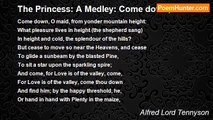Come not, when I am dead, <br />To drop thy foolish tears upon my grave, <br />To trample round my fallen head, <br />And vex the unhappy dust thou wouldst not save. <br />There let the wind sweep and the plover cry; <br />But thou, go by. <br /> <br />Child, if it were thine error or thy crime <br />I care no longer, being all unblest: <br />Wed whom thou wilt, but I am sick of Time, <br />And I desire to rest. <br />Pass on, weak heart, and leave to where I lie: <br />Go by, go by.<br /><br />Alfred Lord Tennyson<br /><br />http://www.poemhunter.com/poem/come-not-when-i-am-dead-2/