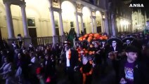 Along the avenue of cypresses, <br />All in their scarlet cloaks and surplices <br />Of linen, go the chanting choristers, <br />The priests in gold and black, the villagers. . . <br /> <br />And all along the path to the cemetery <br />The round dark heads of men crowd silently, <br />And black-scarved faces of womenfolk, wistfully <br />Watch at the banner of death, and the mystery. <br /> <br />And at the foot of a grave a father stands <br />With sunken head, and forgotten, folded hands; <br />And at the foot of a grave a mother kneels <br />With pale shut face, nor either hears nor feels <br /> <br />The coming of the chanting choristers <br />Between the avenue of cypresses, <br />The silence of the many villagers, <br />The candle-flames beside the surplices.<br /><br />David Herbert Lawrence<br /><br />http://www.poemhunter.com/poem/giorno-dei-morti-2/