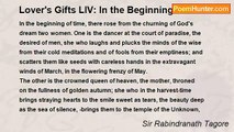 I know not from what distant time <br />thou art ever coming nearer to meet me. <br />Thy sun and stars can never keep thee hidden from me for aye. <br /> <br />In many a morning and eve thy footsteps have been heard <br />and thy messenger has come within my heart and called me in secret. <br /> <br />I know not only why today my life is all astir, <br />and a feeling of tremulous joy is passing through my heart. <br /> <br />It is as if the time were come to wind up my work, <br />and I feel in the air a faint smell of thy sweet presence.<br /><br />Rabindranath Tagore<br /><br />http://www.poemhunter.com/poem/distant-time/