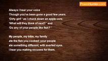 I hear the oriole's always-grieving voice, <br />And the rich summer's welcome loss I hear <br />In the sickle's serpentine hiss <br />Cutting the corn's ear tightly pressed to ear. <br />And the short skirts of the slim reapers <br />Fly in the wind like holiday pennants, <br />The clash of joyful cymbals, and creeping <br />From under dusty lashes, the long glance. <br /> <br />I don't expect love's tender flatteries, <br />In premonition of some dark event, <br />But come, come and see this paradise <br />Where together we were blessed and innocent.<br /><br />Anna Akhmatova<br /><br />http://www.poemhunter.com/poem/i-hear-the-oriole-s-always-grieving-voice/