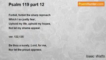 Holiness and comfort from the word. <br /> <br />ver. 128 <br /> <br />Lord, I esteem thy judgments right, <br />And all thy statutes just; <br />Thence I maintain a constant fight <br />With every flatt'ring lust. <br /> <br />ver. 97,9 <br /> <br />Thy precepts often I survey; <br />I keep thy law in sight, <br />Through all the business of the day, <br />To form my actions right. <br /> <br />ver. 62 <br /> <br />My heart in midnight silence cries, <br />"How sweet thy comforts be!" <br />My thoughts in holy wonder rise, <br />And bring their thanks to thee. <br /> <br />ver. 162 <br /> <br />And when my spirit drinks her fill <br />At some good word of thine, <br />Not mighty men that share the spoil <br />Have joys compared to mine.<br /><br />Isaac Watts<br /><br />http://www.poemhunter.com/poem/psalm-119-part-6/