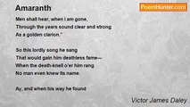 A child came singing through the dusty town <br /> A song so sweet that all men stayed to hear, <br /> Forgetting for a space their ancient fear <br />Of evil days and death and fortune’s frown. <br />She sang of Winter dead and Spring new-born <br /> In the green fields beyond the far hills’ bound; <br /> And how this fair Spring, coming blossom-crowned, <br />Would cross the city’s threshold on the morn. <br /> <br />And each caged bird in every house anigh, <br /> Even as she sang, caught up the glad refrain <br /> Of Love and Hope and fair days come again, <br />Till all who heard forgot they had to die. <br /> <br />And all the ghosts of buried woes were laid <br /> That heard the song of this sweet sorceress; <br /> The Past grew to a dream of old distress, <br />And merry were the hearts of man and maid. <br /> <br />So, at the first faint blush of tender dawn, <br /> Spring stole with noiseless steps through the gray gloom, <br /> And men knew only by a strange perfume <br />That she had softly entered and withdrawn. <br /> <br />But ah! the lustre of her violet eyes <br /> Was dimmed with tears for her sweet singing maid, <br /> Whose voice would sound no more in shine or shade <br />To charm men’s souls at set of sun or rise. <br /> <br />For there, with dews of dawn upon her hair, <br /> Like a fair flower plucked and flung away, <br /> Dead in the street the little maiden lay <br />Who gave new life to hearts nigh dead of care. <br /> <br />Alas! must this be still the bitter doom <br /> Awaiting those, the finer-souled of earth, <br /> Who make for men a morning song of mirth <br />While yet the birds are dumb amid the gloom? <br /> <br />They walk on thorny ways with feet unshod, <br /> Sing one last song, and die as that song dies. <br /> There is no human hand to close their eyes, <br />And very heavy is the hand of God.<br /><br />Victor James Daley<br /><br />http://www.poemhunter.com/poem/spring-dirge/