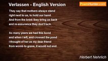 Just like your beautiful long hair, <br />my thoughts have now become entangled, <br />inside my mind, so many years <br />have passed and they will never leave. <br />It is their home, and I do need <br />that you shall know that no sweet maiden <br />could ever touch my heart of hearts. <br />What must not be is what Ye Gods <br />do not allow, no greater love <br />has sought its home inside my soul. <br />Like on the ridge, the Lorelei <br />down here I stand, in my distress <br />with all my truth, not of myself, <br />no Gods may understand it now. <br />For me there was no other love <br />in this, my life. 'Twas only you.<br /><br />Herbert Nehrlich<br /><br />http://www.poemhunter.com/poem/maedchen-an-der-schwalm-english-version/