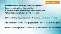 The poignant smell of whin blossom <br />mixed with turf smoke and Atlantic ozone. <br />We picked our way down a bouldered lane <br />onto a crunching Mayo beach <br />glittering and gull-loud. <br />I gripped their small hands <br />for fear they'd hurt themselves. <br /> <br />'What bird is that? ' they asked. <br />Some seabird lay dead among the stones. <br />I made up a name. Then a story, <br />of endless ocean flight; <br />of storms no man ever saw, <br />not even brave sailorboys <br />breasting to America <br />away, away from the blighted island. <br /> <br />'What else? ' they asked. <br />Fiction drained like sand <br />and I had to tell of Mayo men and Galway men <br />whose last-of-Ireland sighs <br />breezed ashore so long ago, <br />over these fatal Western rocks. <br /> <br />We chose a pebble to remind us <br />but there was never any need.<br /><br />James Mills<br /><br />http://www.poemhunter.com/poem/story-and-history/