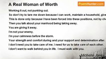 I never knew the beauty was there. <br />I was a little girl with curvaceous hips, and thighs. <br />I was perfect in size. <br />I was young, tender, and firm. <br /> <br />I remember a little pudgy girl. <br />Fat hips and thighs. <br />Only a love saw the good in what I despised. <br />Then a look back, showed all the beauty in me. <br /> <br />I‘ve grown into a <br />Beautiful Black Woman <br />I have full breast, hips and thighs. <br />I’m a voluptuous full figured woman. <br />I’m beautiful, strong, intelligent, and independent. <br />I’ve brought beauty to the world. <br />I ‘m proud and not ashamed <br />I shall not apologize for who I’ve become. <br /> <br />I’m a sexy brown thick sista (sister) . <br />Finer than the rarest bottle of wine <br />I’m good to you, and for you <br />I know now the beauty is in me <br />I’m a Beautiful Black Woman<br /><br />Michelle Jones<br /><br />http://www.poemhunter.com/poem/beautiful-black-woman/