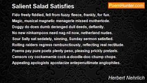 When the little salad onion <br />saw the knife of stainless steel, <br />she forgot her crippling bunion <br />which would have to wait to heal <br />later when the danger's gone. <br />So the little onion fled <br />from the table down and on <br />to the dachshund's fluffy bed. <br /> <br />Down the stairs, onto the street, <br />stranded in the dirty gutter, <br />staring into sure defeat <br />together with the utter clutter. <br /> <br />Came a gust of winter weather, <br />brought more stuff into the curb. <br />One of them, a great big feather. <br />Thought the onion, 'Ill disturb <br />this dilemma for my sake.' <br /> <br />At that moment the street sweeper <br />came, and -with her life at stake- <br />quickly prayed to God, her keeper <br />where her prayer then was heard. <br /> <br />Southern winds can be uplifting, <br />go and ask a passing bird, <br />one of those, now coming, shifting <br />some heavy things around the town. <br /> <br />Picked up both stowaway and feather, <br />the onion mumbled 'Up, not down', <br />it was a godsent, this foul weather. <br />And that is how, from any salad <br />an onion can escape my friend. <br />If you enjoyed this truthful ballad <br />you've read to here, which is the end.<br /><br />Herbert Nehrlich<br /><br />http://www.poemhunter.com/poem/escape-from-the-salad-bowl/