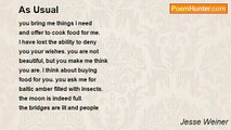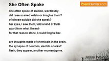 she never thought <br />that I might know a <br />woman's way to <br />love in silence, <br /> <br />she never saw <br />me by a woman's <br />love, but paid for it <br />with my absence. <br /> <br />a woman's silence <br />can't be bought <br />and must be paid. <br />she taught me this- <br /> <br />the silence of <br />a woman's love, tension <br />recovered. how many I've <br />heard, remembering <br /> <br />what could not <br />be cheap or simple, <br />but love reflected <br />in the past tense, <br /> <br />days behind her <br />using her love <br />to solve and create <br />those memories, <br /> <br />withdrawn, shadowed <br />by a film, itself <br />projected to a screen, <br />filtered with silence. <br /> <br />this one never heard <br />her voice, used <br />speech in other ways, <br />by lapses, hoping <br /> <br />to have all of them <br />filled without asking, <br />pure that way, in <br />lack of control, <br /> <br />for what must be <br />asked can not be given, <br />what is offered <br />is stored, restored <br /> <br />and once lost <br />could be bought or <br />thought of again. <br />her silence <br /> <br />remains with me, <br />her words without <br />echoes, her presence <br />cut and recut <br /> <br />like a film, like shadow, <br />inflected by <br />the random construction <br />of her memory, <br /> <br />resonant somehow, together <br />her silence and mine, <br />reflected in her new past. <br />my future seems <br /> <br />to be the creation <br />of another one's memory, <br />one more reflection <br />never seen, <br /> <br />never felt, heard, <br />but in that way. <br />one more, a silent <br />one remembers me <br /> <br />and I feel her gaze, <br />her thoughts of me, <br />that were never <br />there, with me with her.<br /><br />Jesse Weiner<br /><br />http://www.poemhunter.com/poem/afterimage/