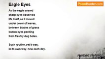 Two jewels in your lovely face <br />may not be just described by me. <br />Cannot conceive a single phrase <br />to do them justice, literally. <br /> <br />When I am looked at in this way, <br />where all the pupil bares itself, <br />I feel like asking if I may <br />come hug and kiss my little elf. <br /> <br />And, if I could choose where to live <br />and those were quite available, <br />I would not hesitate to give <br />my all, that's unassailable. <br /> <br />But since you need them for the task <br />of looking at me when I ask, <br />I'll want to kiss only their lids. <br />With kisses like from little kids. <br /> <br />And when those lids at last get tired <br />from being slobbered on so much, <br />I'll move to regions, much admired. <br />(I thought that was a clever touch) . <br /> <br />So, be forewarned, today's creations <br />are all for you, except the one. <br />That one describes things like sensations <br />way too erotic, <br />thank you HON.<br /><br />Herbert Nehrlich<br /><br />http://www.poemhunter.com/poem/eyes-8/