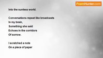 I love you in the rain <br />Walking lonely along the boulevard <br />Gazing at all the passing cars; <br />The glimmer of neon signs <br />Flash like batting eyes from drugstores. <br />Neither of us were ever concerned with crime, <br />Our thoughts were bathed in the sublime <br />As we made our way down dirty streets, <br />Somehow a paradise for the lost; <br />Kiss me again like wet dogs <br />Straying without hope <br />Blindly into the night. <br /> <br />You know my addiction for extinction <br />And everyway I tried to die; <br />We dug Kierkegaard as well as the philosophy <br />Of non-judgment and non-injury; <br />And the poetry of romantic defeat <br />Was oozing from my pores like sweat <br />And I was glad you were next to me <br />To relish the journey of splintered thoughts <br />Blooming into a bouquet of dangerous dreams.<br /><br />Uriah Hamilton<br /><br />http://www.poemhunter.com/poem/kiss-me-again-like-wet-dogs/