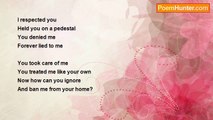 At night i lay awake <br />Locked in my nocturnal state <br /> My mind can't stop racing <br />As my thoughts continue their retracing <br /> Of the events in these past months <br /> <br />I have left a home to discover on my own <br /> Who i am meant to be <br />Away from the oppressing fear, that you <br /> Are ever present and omniescent <br /> <br /> I've come out of my shell <br />A bird out of her cage <br /> My true colors can finally show through <br />I know i can acomplish all that i set out to do <br /> <br /> The people I've met, and the things that they do <br />The clothes that i wear and my outspoken views <br /> In what I believe and the love i profess <br />My turmoiled emotions and sin unconfessed <br /> <br /> I've escaped from your murderess prison <br />I'm from under your ruthless shelter <br /> And in all that i do <br />I've succeded, no thanks to you<br /><br />Guarded Heart<br /><br />http://www.poemhunter.com/poem/all-that-i-do/