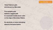 After a long day on the steering <br />end of her old canoe, when the <br />only light shimmering on the lake <br />was the vanilla moon of late July. <br /> <br />Her friends slept in the tent <br />they struggle to erect that day <br />on Mile Island. <br />The camp fire smoldered, <br />crickets sang <br />while fireflies played <br />in the nearby bush. <br /> <br />Gingerly balancing herself, barefoot, <br />over the slippery surface of the crag <br />along the lake shore. <br />Slipping off her clothing, <br />sliding quietly into the dark depths. <br />She swam naked with the Buck moon.<br /><br />Joyce Chelmo<br /><br />http://www.poemhunter.com/poem/buck-moon/