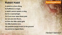 A carrot top, all olive green <br />was growing next to a green bean. <br />Said carrot, 'what's your date of birth <br />when did they plant you in the earth? ' <br />The bean, not certain of the date <br />was not equipped for a debate <br />and, with a quick and final nod <br />she turned away her swollen pod. <br />The carrot, itching for a fight <br />said 'how's the weather at that height? <br />You beans are always heavenbound, <br />we carrots do prefer the ground.' <br />The bean ignored the silly tease <br />and swayed with pleasure in the breeze. <br />A rabbit who was homeward bound <br />pulled up the carrot from the ground. <br />Since rabbits do not climb or fly <br />they normally don't eye the sky. <br />The bean was sad to see him go, <br />but quite content to grow and grow. <br /> <br />You see, all beans are really mothers, <br />not cousins, nephews, uncles, brothers. <br />The carrot being a big lad <br />would never be the least bit sad <br />if birds or rabbits came and stole <br />a thousand beans from the tall pole. <br />Boy carrots may believe in fashion <br />but it's the girls who have compassion.<br /><br />Herbert Nehrlich<br /><br />http://www.poemhunter.com/poem/rabbit-and-bean-children/