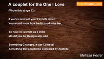 She shines and sparkles <br />And she lives up to her name <br />She dance, She dreams <br />Of reaching Stoardom and fame <br /> <br />Shes there for me when I need her <br />And all the times i dont <br />Even when I tell her to leave me be <br />She reply I could if i would but i wont <br /> <br />She is my Best friend until the very end <br />And that I will never doubt. <br />For through thick and thin we were like kin <br />Shes the one person i can't do without <br /> <br />So this for her Crystal <br />The loades up Pistol <br />My Sistah From anotha Mistah <br />Till the end my friend <br />Just like a big round circle <br />Our friendship will never end<br /><br />Melissa Ferrer<br /><br />http://www.poemhunter.com/poem/best-friend-3/