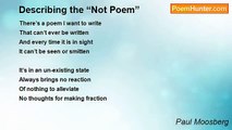 I wake up in the night <br />From perceptions in my sight <br />Inventions and poems to be <br /> <br />From universal law <br />To a washing machine’s flaw <br />De-straw-ing life in agony <br /> <br />Then future CPU <br />3-d engines won’t subdue <br />All my views can feel like debris <br /> <br />For I’m just a retard <br />It feels as if I work hard <br />At nothingness consistently<br /><br />Paul Moosberg<br /><br />http://www.poemhunter.com/poem/i-m-just-a-retard/