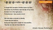 I wish that I could see an angel <br />I hear some people say. <br />If only one would smile at me <br />That would really make my day <br /> <br />I wish that I could hear an angel <br />I've heard some people say. <br />If only one would whisper in my ear <br />Wow, that would really make my year. <br /> <br />I wish that I could feel an angel <br />I hear some people say. <br />If only one would comfort me <br />And I could feel their soft embrace <br />Or maybe they'd be kind enough <br />To plant a kiss upon my face <br /> <br />Oh child the angel softly whispers <br />If only you could see, <br />That if you opened up your heart <br />Then you'd be aware to me <br /> <br />I send you fragrant flowers and: <br />I shower you with rainbows to fill your darkest rooms <br />I sing melodious music to lull you of to sleep <br />Yet nothing that I send, will you be able to sense <br />Until you open up your heart and <br />Pull away the fence.<br /><br />Kristin Nicole RothDavis<br /><br />http://www.poemhunter.com/poem/angels-amongst-us/