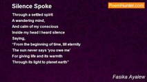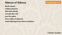 Safe <br />Untouched <br />A new world <br />Where you are the king <br />At the same time the ruled <br />Away from the big ugliness <br />When being in an aura of silence<br /><br />Fasika Ayalew<br /><br />http://www.poemhunter.com/poem/aura-of-silence/