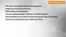 This bloodsucking insect sings in the night its usual melody. <br />“My dear Health Organization and it’s mandatory I live on human blood <br />Though I give the disease causing recurring fever what do you called Malaria which I am not aware. <br />I have the right to live. Isn’t it? <br />The whole World is sick with so many diseases and you make pesticides to destroy our brotherhood then what about the mankind who makes deadly devices to eradicate the Nature? ”<br /><br />nimal dunuhinga<br /><br />http://www.poemhunter.com/poem/health-organization-malaria-and-the-mosquito/