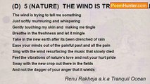 I longed to share, I longed to love <br />Wanted to keep you in my heart and above <br />But I couldnt bear to see it die <br />So darling, I must say goodbye <br /> <br />Should I forget you now, my dear <br />The happy and cruel times, moments so near <br />Extuingish the flame burning in my heart <br />My grieving soul to see us part <br /> <br />I need a cup lined with wine <br />For the once pleasing love that has burdened my mind <br />Why cant love just be consumed in my drink <br />For me to capture in forever, within <br /> <br />I asked, why do I bring m'self so much pain <br />My mind that had been left behind, answered with disdain <br />You are clear, you are right <br />You long to love, thats your plight <br />But you seek your love in obscure minds <br />Who cannot love, will not let their fears unwind <br />You seek a friend, not love and you will find <br />Love may dwell of a different kind <br />Let it warm, let it grow <br />Slow and steady, the wind will blow <br />In your direction, dont let it go<br /><br />Renu Rakheja a.k.a Tranquil Ocean<br /><br />http://www.poemhunter.com/poem/b-5-pain-longing-goodbye-and-let-the-wind-blow/