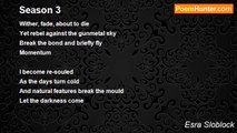 I returned home on this morning <br />After a superbly convivial evening <br />To attack my burgeoning woodpile <br />With a very…very sharp axe. <br />Nice. <br />Therapy. <br />Especially as the morning mist <br />Combines with the heady scent of sap <br />Sharpening my senses. <br /> <br />With satisfyingly aching arms <br />Boots go on and off to the moor. <br />Relentlessly onward, upward, skyward. <br />Another spectrum of greens through browns to black. <br />Ominous crags tower demonically <br />While streams cascade to wash their untold sins away. <br />In the rough beside me lay pristine white bunkers. <br />The top, Chew Reservoir, brew. <br />Visibility dwindles to next to nothing. <br />Legs like lead and head in the clouds. <br /> <br />Not a soul. <br />Not a sound. <br />Priceless. <br /> <br />Descent and the sky hangs perilously. <br />Recrossing the snowline and my vista returns. <br />Myopia incarnate saw fit to strew <br />Plastic bottles here and there. <br />I curse forcefully yet silently. <br />Impossible light colours all I see. <br />The trees come back bringing a few degrees of warmth with them. <br />I can almost see my house from here! <br />The gradient levels and people appear <br />Strolling around Dovestone Reservoir. <br />I consider myself blessed <br />With fitness to see what I saw. <br />On my return home <br />The savage beauty of the day <br />Fills me with warmth.<br /><br />Esra Sloblock<br /><br />http://www.poemhunter.com/poem/saddleworth-moor-and-more/